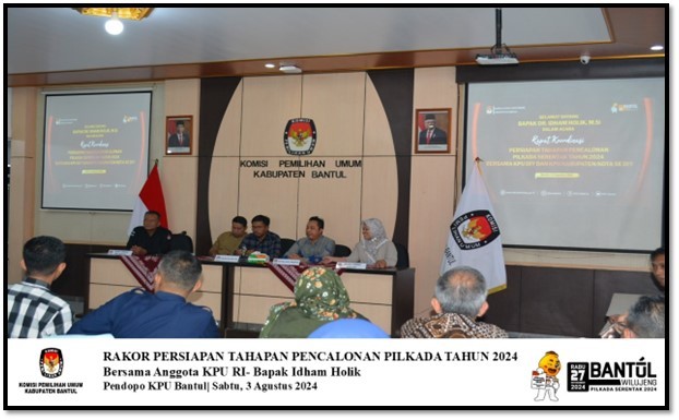 Bapak DR. H Idham Holik (Pimpinan KPU RI) Memberikan Arahan Tahapan Pencalonan Pilkada Serentak 2024 di Pendopo KPU Bantul