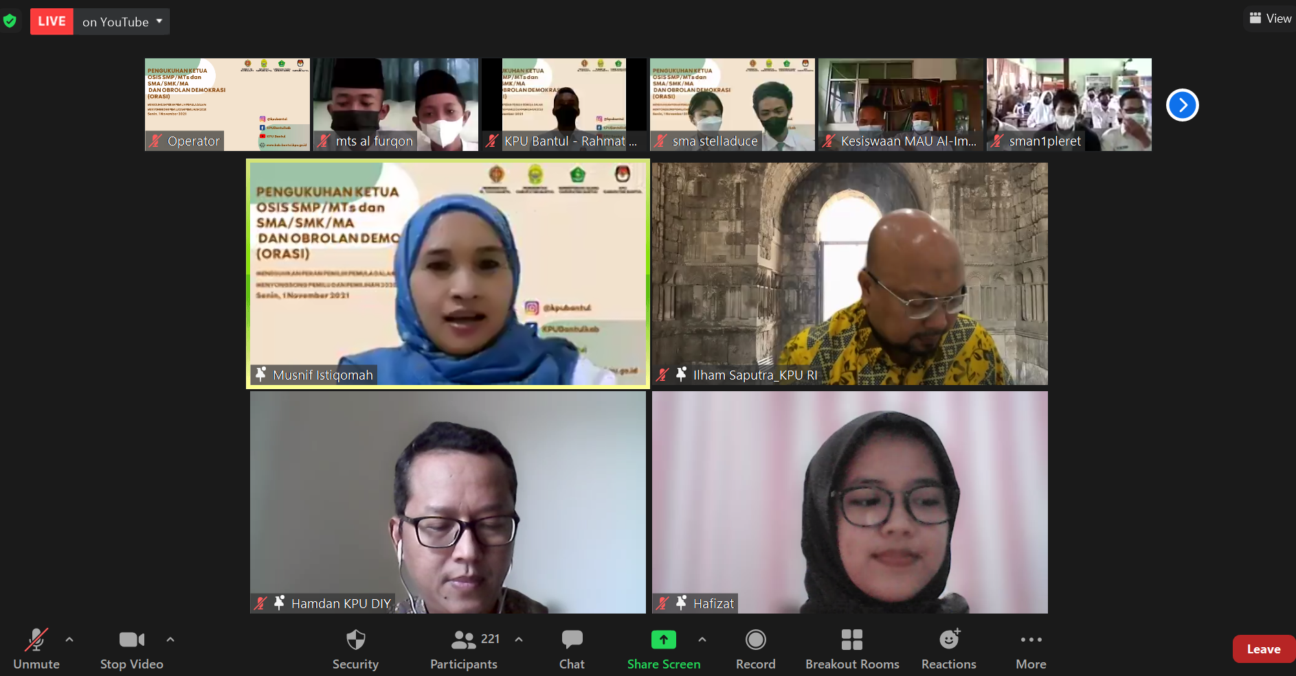 Pada Senin (01/11) Bupati Bantul, Abdul Halim Muslih mengukuhkan Ketua OSIS terpilih hasil Pemilos Serentak se-Kabupaten Tahun 2021. Pengukuhan yang dilakukan secara virtual ini diikuti oleh 144 sekolah dari jenjang SMP/Mts dan jenjang SMA/SMK/MA se-Kabupaten Bantul. Bupati Bantul berpesan kepada Ketua OSIS terpilih untuk segera melakukan konsolidasi dengan pengurus OSIS lainnya dalam melaksanakan program kerja. Selain itu Halim berpesan Ketua OSIS agar tetap menjaga prestasi meskipun menjabat sebagai Ketua OSIS, keaktifan diorganisasi harus diimbangi dengan prestasi intelektual sehingga dapat menjadi contoh baik bagi siswa yang lain.
