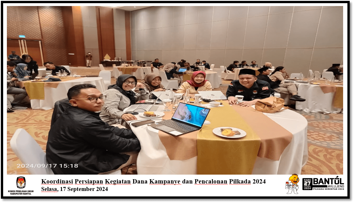 - 18 September 2024 : Diskusi Tematik ke-6 bersama badan adhoc, Rakor pembatasan pengeluaran dana kampanye dan Rakor persiapan Laporan Dana Kampanye;
