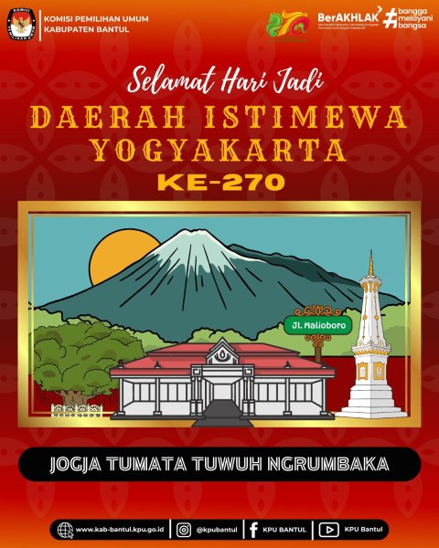 KPU Kabupaten Bantul mengucapkan Hari Jadi ke-270 Daerah Istimewa Yogyakarta.
