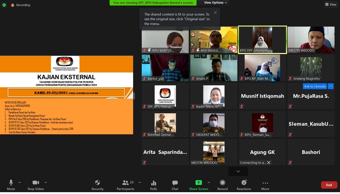 Hari Kamis, 29 Juli 2021 pukul 13.00 WIB sampai selesai, KPU Bantul mengadakan “Kajian Verfikasi Partai Politik dalam Penyelenggaraan Pemilu” secara daring.