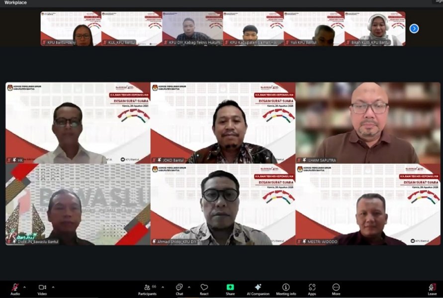 Rabu, 28 Agustus 2025 Pukul 09.00 WIB, KPU Bantul mengadakan kegiatan Kajian Tematik Tahapan Teknis Kepemiluan yang bertemakan Desain Surat Suara melalui zoom meeting. Hadir sebagai pemantik diskusi diantaranya adalah Ilham Saputra (Ketua KPU RI periode 2021-2022), Hamdan Kurniawan (Direktur LIDI Demokrasi dan Ketua KPU DIY periode 2018-2023), Didik Joko Nugroho (Ketua Bawaslu Bantul). Peserta dalam kajian teknis ini adalah penyelenggara pemilu baik dari KPU dan Bawaslu, 18 Parpol Peserta Pemilu 2024 dan stakeholder terkait diantaranya Kesbangpol. Acara dibuka oleh Ketua KPU Bantul, Joko Santosa dalam sambutannya kegiatan kajian teknis kepemiluan Desain Surat Suara ini diharapkan dapat menjadi bahan evaluasi dan perbaikan untuk penyelenggaraan pemilu. Joko Santosa berharap mendapatkan input dari narasumber, peserta zoom dan peserta pemilu mengenai Desain Surat Suara sehingga kedepannya Desain Surat Suara dapat mempermudah para pemilih dan penyelenggara pemilu di tingkat KPPS. Selanjutnya sambutan juga diberikan oleh Ketua KPU DIY, Ahmad Shidqi. Dalam sambutannya Ahmad Shidqi menjelaskan bahwa kajian teknis desain surat suara yang dilakukan oleh KPU Bantul ini sangat strategis dilakukan, karena desain surat suara dapat menentukan tingkat partisipasi pemilih.