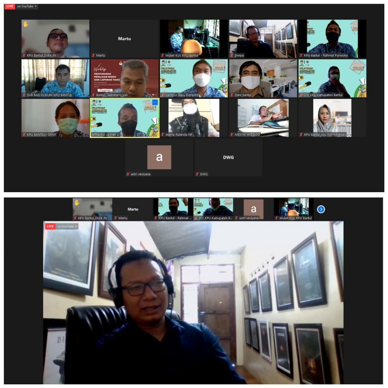 Senin (29 /11) KPU Kabupaten Bantul telah melaksanakan pelatihan jurnalistik bagi internal pegawai secara daring. Menghadirkan narasumber Fajar Dwi Putra, yang merupakan akademisi dan praktisi jurnalistik. Sekarang ini beliau tercatat sebagai dosen Ilmu Komunikasi Universitas Ahmad Dahlan. Pelatihan dimaksudkan agar bisa menambah kemampuan pegawai KPU Kabupaten Bantul dalam menulis berita. Dan nantinya menulis bisa menjadi bagian yang tidak terpisahkan dari aktivitas kesehariannya.