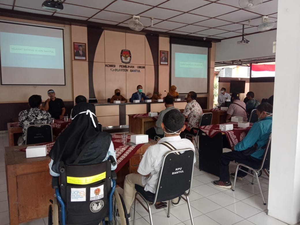 Komisi Pemilihan Umum Kabupaten Bantul menyelenggarakan sosialisasi untuk difabel dengan tema uji publik DPS, Senin 28 September 2020. Acara yang diselenggarakan di Pendopo KPU Bantul menghadirkan perwakilan difabel dari masing-masing kecamatan di Kabupaten Bantul. Sebagai narasumber dalam acara sosialisasi Arif Widayanto selaku Kadiv Perencanaan dan Program Data meminta agar teman-teman difabel ikut berperan aktif dalam menggunakan hak pilihnya di TPS nanti. Agar TPS dapat mengakomodir kebutuhan tempat teman-teman difabel memilih, dilakukan uji petik pengecekan sejumlah KTP el dalam DPS, apakah mereka sudah terdaftar dan apakah pada kolom keterangan sudah menjantumkan jenis difabel untuk memudahkan teknis di lapangan ketika hendak memberikan suaranya di TPS.