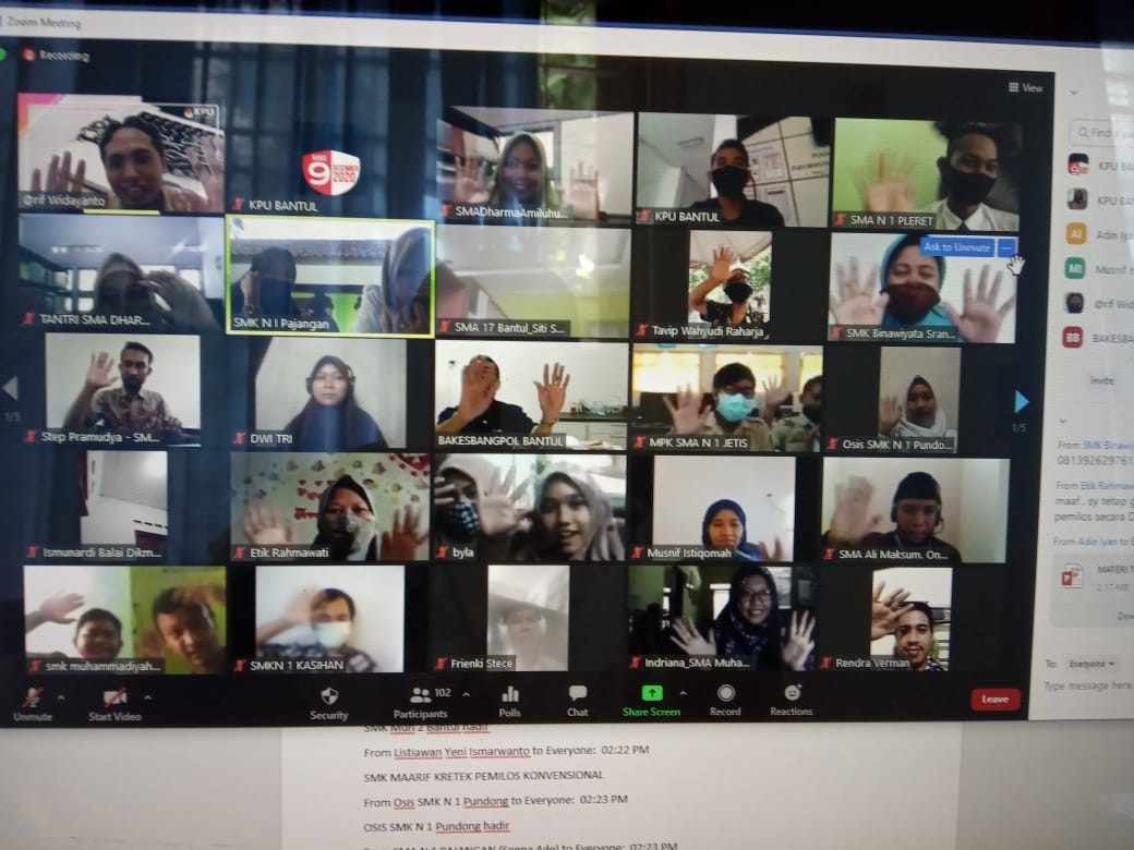 Sebagai tindak lanjut dari koordinasi pelaksanaan PEMILOS tingkat SLTA, KPU Bantul kembali menggundang perwakilan sekolah guru dan siswa SLTA untuk mengikuti Training of Trainer (TOT) yang dilakukan menggunakan metode daring pada jumat siang (16-10-2020). Setidaknya ada 115 peserta yang hadir dalam kegiatan menggunakan zoom meeting tersebut. Sebagai narasumber utama, Musnif Istiqomah selaku Kadiv Parmas memberikan arahan mengenai pelaksanaan PEMILOS SLTA tahun 2020 dengan 2 metode yaitu metode luring dan daring. Pemilihan metode PEMILOS ini diserahkan kepada pihak sekolah, sesuai dengan kesangupan masing-masing sekolah.