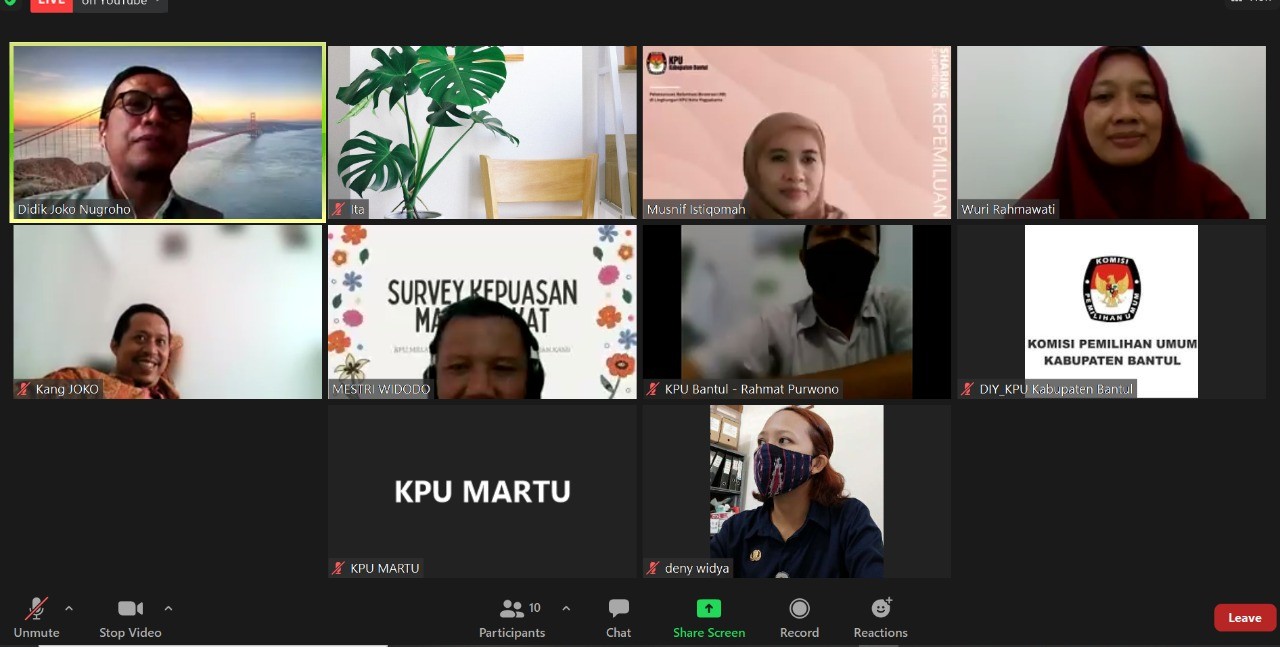 Kamis (20/1) KPU Kabupaten Bantul mengadakan Rakor Persiapan Survei Kepuasan Masyarakat (SKM) KPU Kabupaten Bantul Tahun 2021 secara daring. Rapat yang diikuti oleh Komisioner dan sekretariat KPU Bantul ini dipimpin langsung oleh Ketua KPU, Didik Joko Nugroho.
