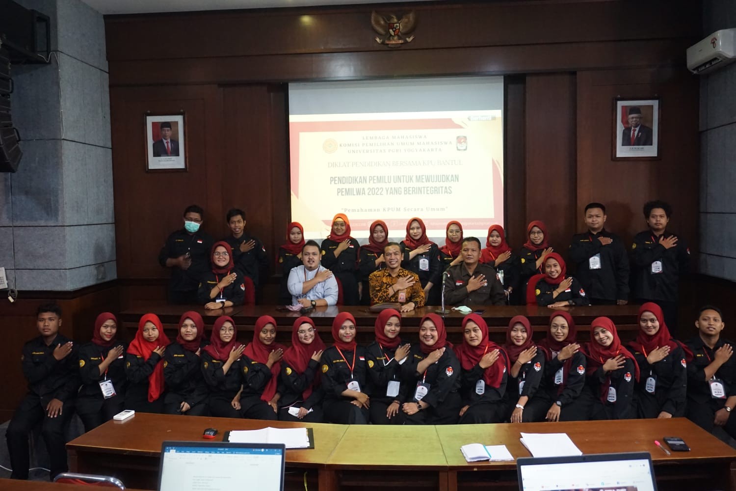 KPU Kabupaten Bantul menjadi narasumber utama pada diklat yang diadakan oleh Lembaga Mahasiswa Komisi Pemilihan Umum Mahasiswa Universitas PGRI Yogyakarta (LM KPUM UPY). Acara yang diadakan selama 3 (tiga) hari berturut-turut mulai tanggal 15 – 17 Maret 2022 dan bertempat di ruang multimedia lantai 3 Gedung A kampus UPY, Jl IKIP PGRI I Sonosewu No. 117 Sonosewu, Ngestiharjo, Kasihan, Kabupaten Bantul ini diikuti oleh 34 peserta yang merupakan perwakilan dari semua fakultas yang ada.