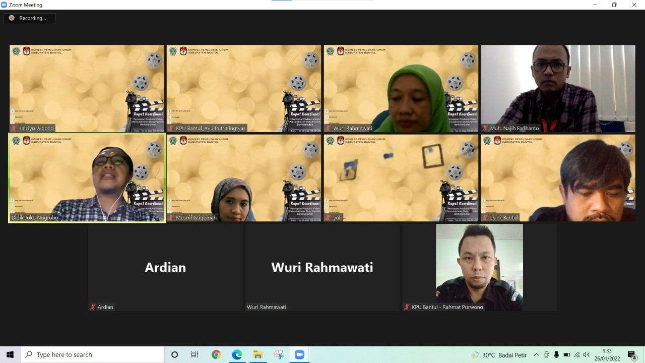 Dalam rakor ini didiskusikan konsep 3 (tiga) video yang ingin diproduksi yaitu pertama video cek nama terdaftar dan atau masih terdaftar sebagai pemilih melalui laman https://lindungihakmu.kpu.go.id/ yang bertujuan untuk mengedukasi dan penjelasan secara detail dengan penekanan bagian atau kolom yang wajib diisi dan bagaimana cara pengisian kolom tersebut. Kedua adalah video cek hoaks Pemilu (data pemilih, surat suara tercoblos, dan lain sebagainya), tujuannya untuk mengedukasi masyarakat agar melakukan pengecekan kebenaran informasi sebelum mempercayai dan menyebarkannya. Ketiga adalah video PDPB yang bertujuan untuk menginformasikan langkah-langkah yang dilakukan oleh KPU Kabupaten Bantul dalam melakukan PDPB