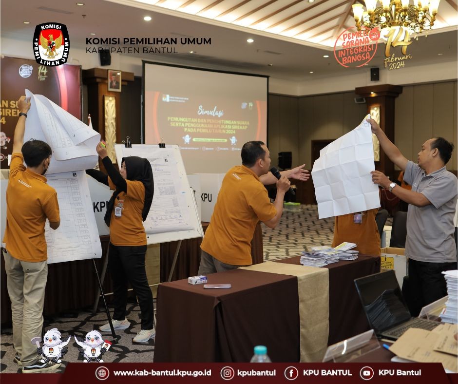 KPU Kabupaten Bantul menggelar Simulasi Pemungutan dan Penghitungan Suara serta Penggunaan Aplikasi Sirekap bersama pemangku kepentingan di Kabupaten Bantul, Rabu (24/1/2024), di Hotel Grand Rohan Jogja. Kegiatan ini digelar untuk memberikan gambaran yang jelas mengenai proses penyelenggaraan Pemilu 2024.