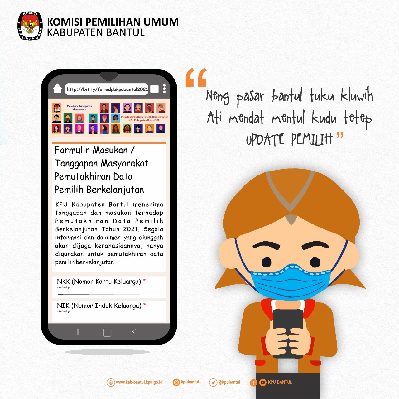 KPU Bantul terus melakukan inovasi layanan untuk pemilih salah satunya program Sistem Informasi Jaga Data (SIJADA). Program Sijada ini dikembangkan sebagai upaya meningkatkan peran serta masyarakat untuk lebih peduli terhadap data pemilih, selain itu juga sebagai ruang edukasi tentang pentingnya masyarakat mengetahui hak pilih sebagai hak konstitusional yang dilindungi oleh undang undang. Ketua Divisi Teknis Penyelenggaraan KPU Bantul,Joko Santosa menjelaskan bahwa dalam program Sijada ini KPU Bantul menyiapkan formulir pemutakhiran data pemilih secara online melalui link google doc, melalui link ini masyarakat dapat memberikan tanggapan dan masukan terhadap data pemilih di seluruh wilayah Kabupaten Bantul, masyarakat bisa melakukan update data, seperti jika pindah domisili antar kecamatan, perubahan identitas data, perubahan status pekerjaan, atau melaporkan anggota keluarga yang sudah meninggal. Joko menegaskan bahwa untuk akses link ini dapat melalui, http://bit.ly/formdpbkpubantul2021. Segala informasi dan dokumen yang diunggah akan dijaga tingkat kerahasiannya, data tersebut hanya digunakan KPU Bantul untuk pemutakhiran data berkelanjutan.