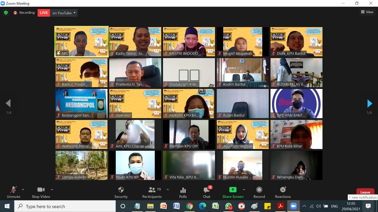 Pada Kamis (29/04) KPU Bantul melakukan bedah buku “Bantul Memilih 2020;Catatan Proses Penyelenggaraan Ditengah Pendemi Covid-19”. Bedah buku yang dilaksanakan secara virtual meeting serta live youtube ini menghadirkan Komisioner KPU RI, Pramono Ubaid Thantowi selaku pembedah utama dan Ketua Divisi Sosialisasi dan Partisipasi Masyarakat KPU Bantul, Musnif Istiqomah. Buku ini merupakan ringkasan dari semua tahapan Pemilihan dimulai sejak penyusunan anggaran sampai dengan penetapan calon terpilih. Dalam kesempatan ini Musnif menjelaskan bahwa buku ini dikemas dengan memperbanyak informasi agar lebih mudah dipahami oleh pembaca. Selain itu didalam buku ini juga diperkaya dengan tabel hasil-hasil Pemilihan misalnya berkaitan dengan perolehan suara dari pasangan calon maupun angka partisipasi pemilih di masing-masing kecamatan. Salah satu capaian yang ditampilkan dalam buku ini adalah partisipasi pemilih di Bantul mencapai prosentase 80,32% , capaian ini melebihi target partisipasi nasional maupun regional.