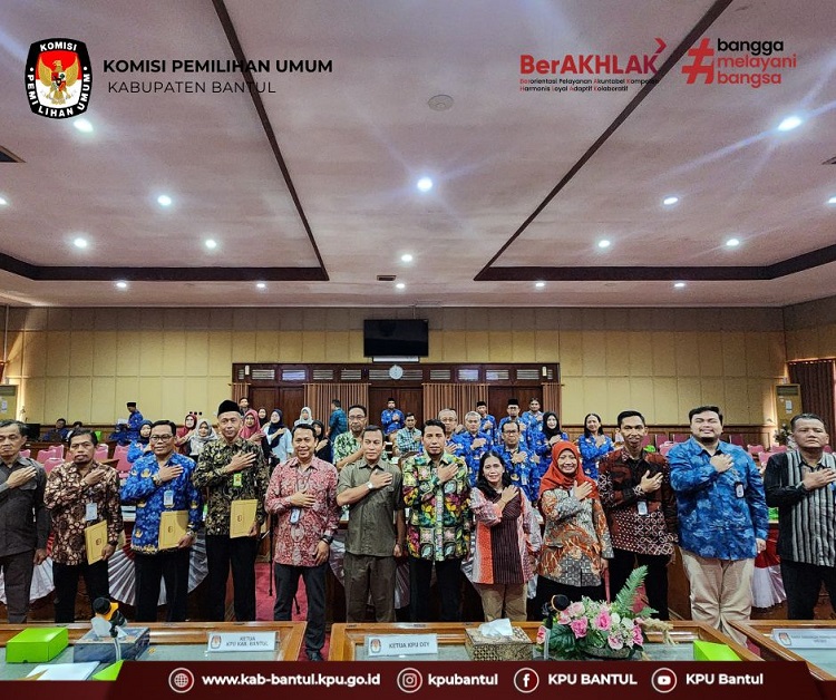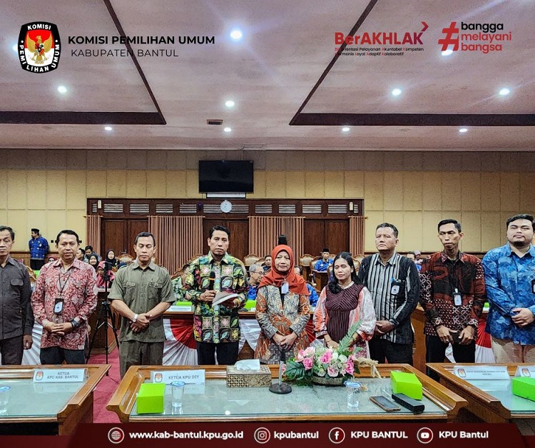 Kamis (17/7) KPU Kabupaten Bantul launching buku sosdiklih parmas SDM bertempat di Gedung DPRD Kabupaten Bantul. Acara yang dikemas secara hybrid ini mengundang Pimpinan DPRD, KPU DIY dan KPU Kabupaten/Kota se-DIY, serta stakeholder terkait, ormas, PPK dan PPS Pilkada 2024. Ketua KPU Kabupaten Bantul, Joko Santosa dalam sambutannya menyampaikan bahwa buku sosdiklih parmas ini bisa menjadi peninggalan dan peta bagi KPU dan masyarakat di masa yang akan datang. “Buku ini bisa menjadi legacy dan road map”, jelasnya. Ketua KPU DIY, Ahmad Shidqi, melaksanakan launching buku ini di hadapan Wakil Ketua DPRD Kabupaten Bantul, Agung Laksmono dan Ketua Komisi A, Jumakir. Apresiasi dan selamat pada KPU Kabupaten Bantul atas launching ini. “Semoga bisa menginspirasi KPU Kabupaten/Kota yang lain”, harapnya. Dalam paparannya, Ketua Divisi Sosdiklih Parmas SDM KPU Kabupaten Bantul menyampaikan terima kasih kepada PPK dan PPS yang sudah menyelesaikan buku dengan segala jerih payahnya. Dimana buku ini bisa menjadi sumber data dan referensi kajian ilmiah bagi para akademisi. Dalam acara ini juga diserahkan Naskah Perjanjian Kerjasama antara KPU Kabupaten Bantul dengan 3 instansi yaitu Disdikpora, Kantor Kemenag dan Balai Pendidikan Menengah Kabupaten Bantul.