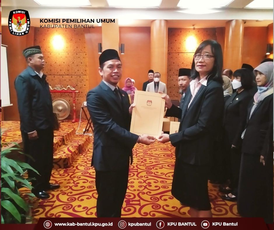 KPU Kabupaten Bantul melakukan Pengambilan Sumpah/janji serta orientasi tugas sekretariat Panitia Pemilihan Kecamatan (PPK) Pemilihan Umum 2024 pada hari ini, Jum’at (20/1). Acara yang bertempat di Hotel Ros In Jogja ini dihadiri oleh Sekretaris Daerah yang mewakili Bupati Bantul.