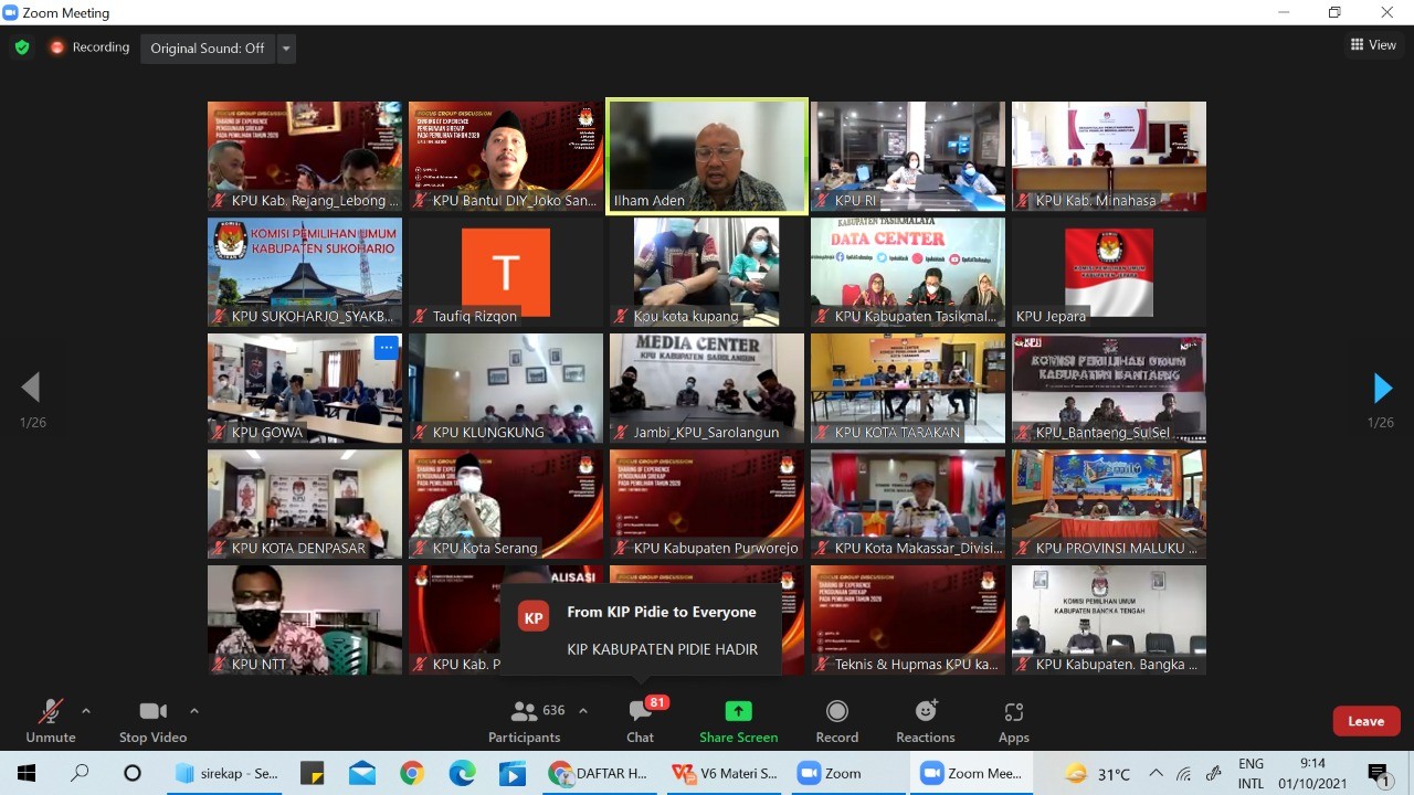 Jumát (01/10/21) Komisi Pemilihan Umum Republik Indonesia melaksanakan kegiatan Focus Group Discussion (FGD ) “Sharing Experience Penggunaan Sistem Informasi Rekapitulasi (SIREKAP), yang diikuti oleh KPU Provinsi dan KPU Kab/Kota Seluruh Indonesia.” KPU Kabupaten Bantul menjadi salah satu audiens yang berkesempatan untuk ikut dalam kegiatan ini.