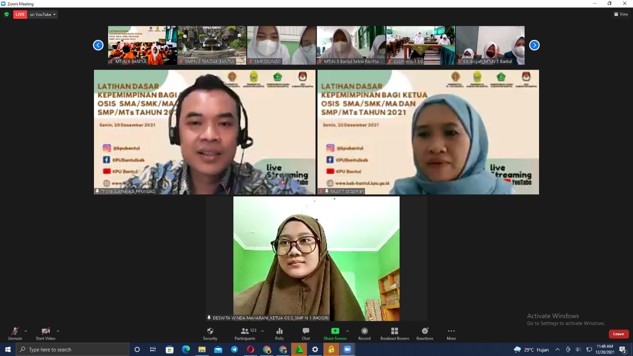 Senin (20 /12) KPU Kabupaten Bantul mengadakan Latihan Dasar Kepemimpinan (LDK) bagi Ketua OSIS SMA/SMK/MA dan SMP/MTs Tahun 2021 se-Kabupaten Bantul secara daring menggunakan zoom meeting dan disiarkan secara langsung melalui akun YouTube KPU Bantul. Acara yang tidak hanya dihadiri oleh Dinas/Instansi terkait, yaitu Dinas Pendidikan, Pemuda dan Olah Raga (DisDikpora), Kementrian Agama Bantul dan Balai Pendidikan Menengah (Balai Dikmen) namun dihadiri juga oleh para Kepala Sekolah dan Pengurus OSISnya.