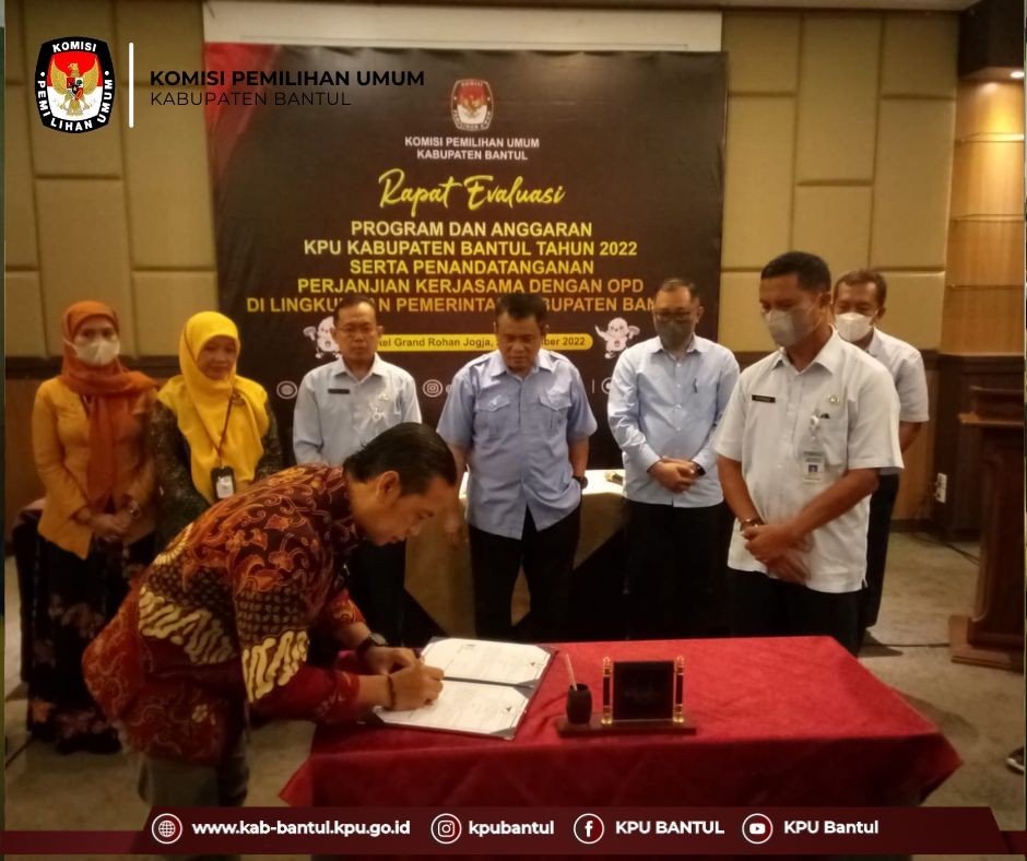 Pada Selasa (27/12) KPU Bantul melakukan penandatanganan kerjasama dengan 8 (delapan) organisasi perangkat daerah Pemkab Bantul. Adapun perangkat daerah tersebut yaitu Dinas Kominfo, Dinas Dukcapil, Dinas Dikpora, Dinas Kebudayaan, Dinas Pariwisata, Dinas Perpusatakaan dan Kearsipan, BPKPAD serta Badan Kesbangpol Bantul. Ketua KPU Bantul, Didik Joko Nugroho menjelaskan bahwa kerjasama dengan perangkat daerah ini merupakan tindak lanjut dari MOU yang telah ditandatangani antara KPU Bantul dengan Bupati Bantul beberapa waktu yang lalu. Perangkat daerah yang melakukan tandatangan kerjasama ini selanjutnya akan mengimplementasikan kerjasamanya baik dalam tahapan Pemilu maupun dalam tahapan pemilihan kepala daerah 2024. Lebih lanjut Didik menerangkan bahwa nantinya masing-masing dinas/badan akan fokus pada kerjasama sesuai dengan bidangnya masing-masing seperti Dinas Kominfo yang akan fokus pada kerjasama dalam hal publikasi dan informasi kepemiluan, Dinas Dukcapil akan fokus pada kerjasama dalam pemutakhiran data pemilih, Dinas Kebudayaan akan fokus pada sosialisasi tahapan pemilu dan pemilihan dengan melibatkan para pelaku budaya, Dinas Perpustakaan dan Kearsipan akan fokus pada perawatan dan penyimpanan arsip hasil pemilu dan pemilihan kepala daerah, Badan Kesbangpol akan fokus pada Pendidikan pemilih dan Pendidikan politik kepada masyarakat Bantul. Didik berharap melalui kerjasama dengan perangkat daerah ini dapat meningkatkan kualitas penyelenggaraan Pemilu di Kabupaten Bantul serta dapat mewujudkan tujuan Pemilu sebagai sarana integrasi bangsa.