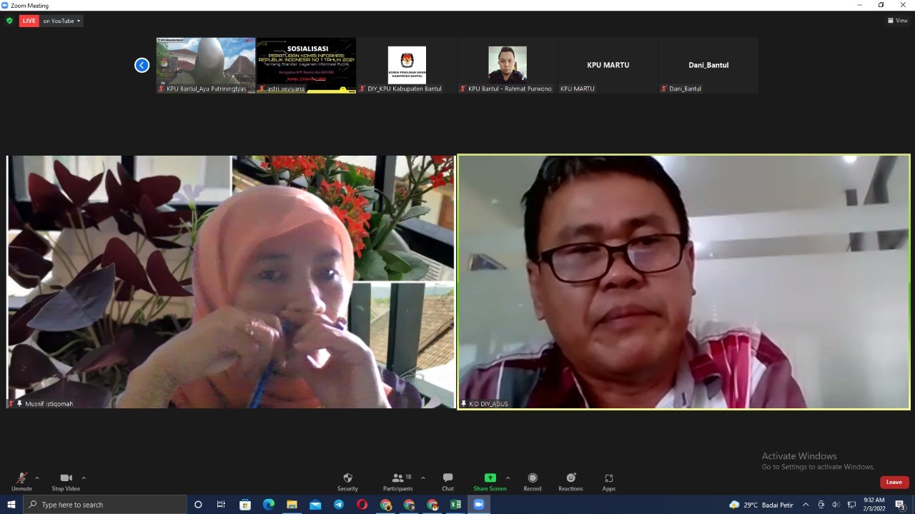 Kamis (3/2) KPU Kabupaten Bantul mengundang Komisi Informasi Daerah (KID) DIY untuk memberikan sosialisasi Peraturan Komisi Informasi terbaru yaitu PerKI Nomor 1 Tahun 2021 tentang Standar Layanan Informasi Publik. PerKi ini menggantikan perKI yang lama yaitu perKI Nomor 1 Tahun 2010.. Acara yang diikuti oleh semua pegawai ini dipandu oleh Ketua Divisi SDM dan parmas, Musnif istiqomah.