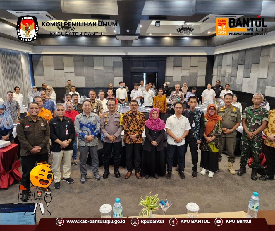 Rabu (24/7) KPU Kabupaten Bantul mengadakan rapat koordinasi dan juga sosialisasi tahapan pencalonan Pemilihan Bupati dan Wakil Bupati Bantul Tahun 2024 bagi Stakeholder bertempat di Hotel Grand Rohan Jogja.