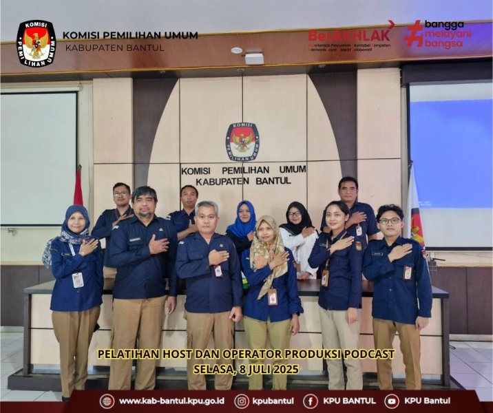 Selasa (8/7) KPU Kabupaten Bantul mengadakan Pelatihan Host dan Operator Produksi Podcast. Kegiatan yang bertempat di pendopo dan ruang podcast ini menghadirkan narasumber dari tim podcast KPU DIY yang dikomandoi oleh Fitri Hartati, Mudita Maidihani dan Clara Stella. Diikuti oleh 8 orang peserta dari 4 subbagian yang nantinya akan menjadi tim podcast KPU Kabupaten Bantul.