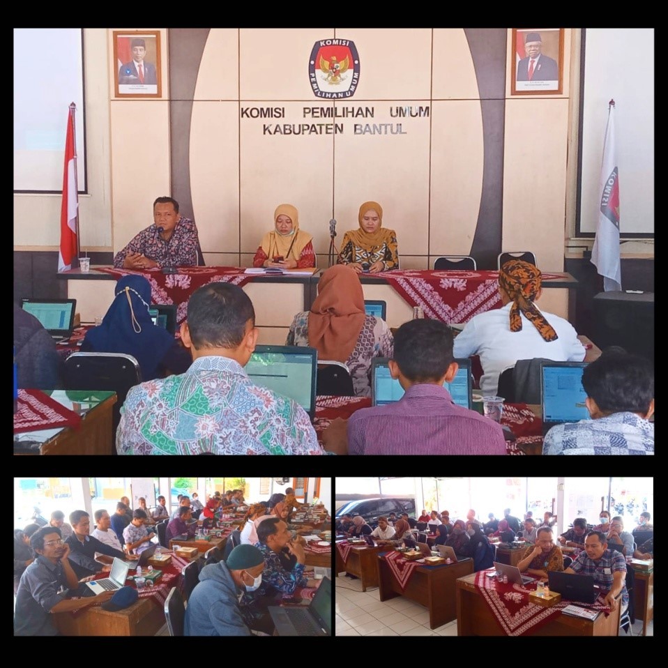 Komisi Pemilihan Umum (KPU) Kabupaten Bantul, Jumat, 13 Januari 2023, menyelenggarakan Rapat Koordinasi Penyampaian Hasil Pemetaan Tempat Pemungutan Suara (TPS) berdasarkan data hasil sinkronisasi Daftar Penduduk Potensial Pemilih Pemilihan (DP4) dengan Daftar Pemilih Tetap (DPT) Pemilihan Terakhir yang telah dimutakhirkan secara berkelanjutan di Pendopo KPU Kabupaten Bantul, Sumuran, Palbapang, Bantul.