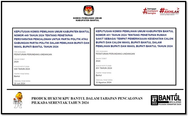 PRODUK HUKUM KPU KABUPATEN BANTUL DALAM TAHAPAN PENCALONAN PILKADA 2024: KPT KPU BANTUL NO 449/2024 DAN KPT KPU BANTUIL NO 451/2024