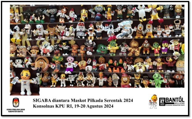 Senin, 19 Agustus 2024 – SIGABA, Maskot Pemilihan Kepala Daerah (Pilkada) Tingkat Kabupaten Bantul turut serta dalam kegiatan konsolidasi nasional KPU RI dengan tema : Kesiapan Pilkada Serentak 2024. SIGABA melengkapi keanekaragaman maskot di etalase konsolnas, berdampingan dengan maskot dari 37 provinsi, 415 Kabupaten dan 93 kota yang menyelenggarakan pilkada serentak Tahun 2024.