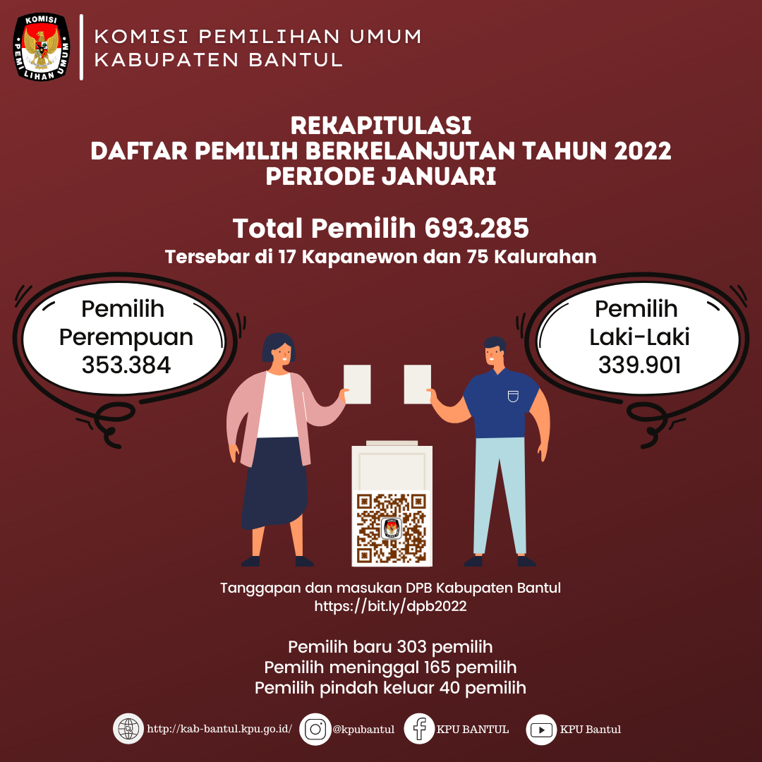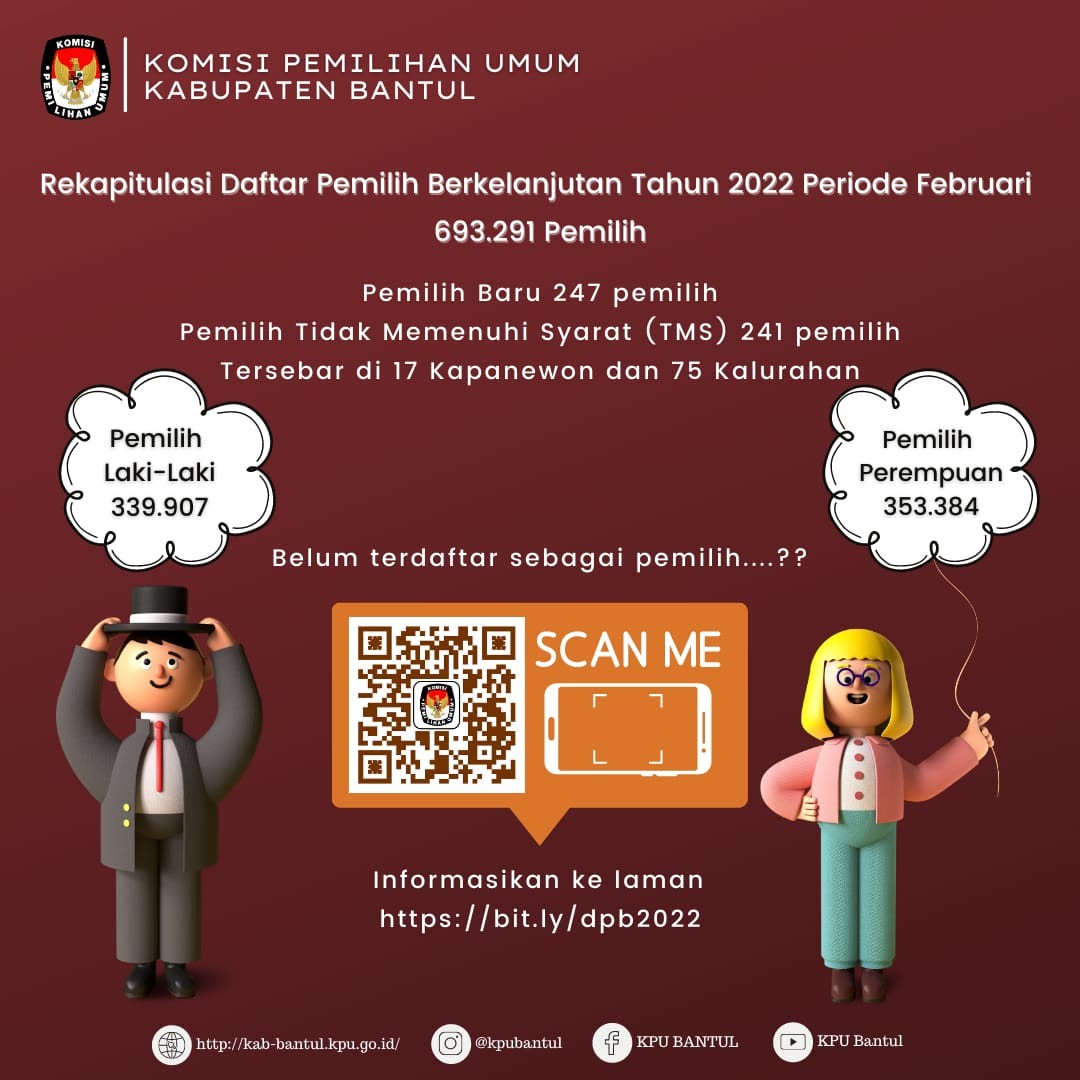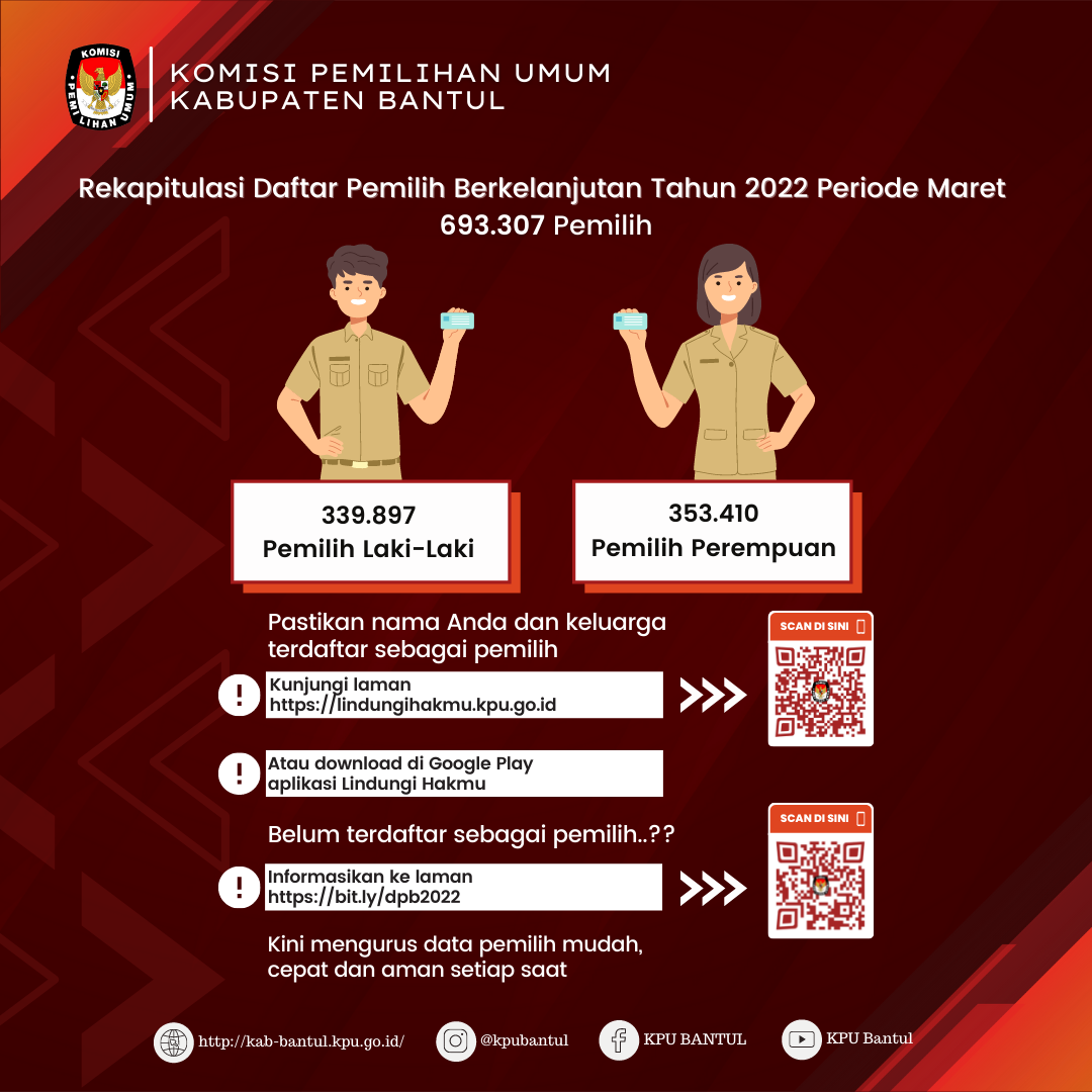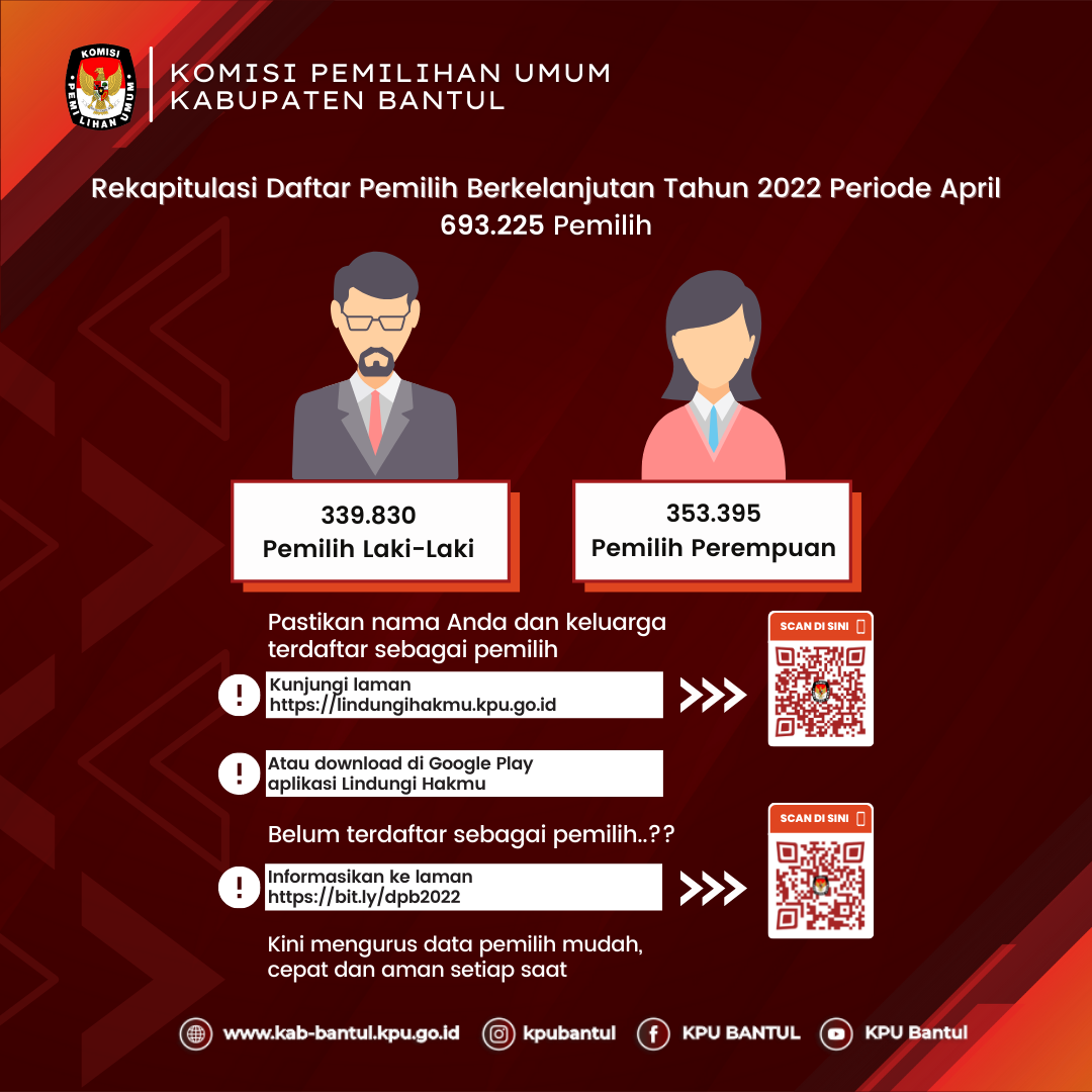 Tersebar di 17 Kapanewon dan 75 Kalurahan. Untuk memastikan nama anda dan keluarga terdaftar sebagai pemilih, kunjungi laman https://lindungihakmu.kpu.go id atau download aplikasi Lindungi Hakmu di Google Play