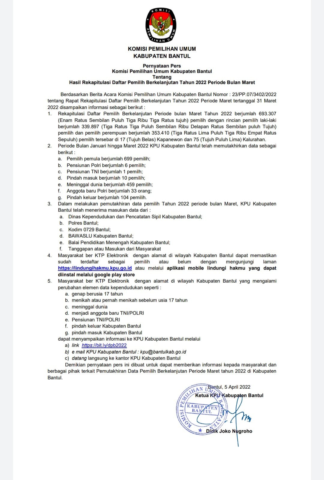 Daftar Pemilih Berkelanjutan Tahun 2022 Periode April